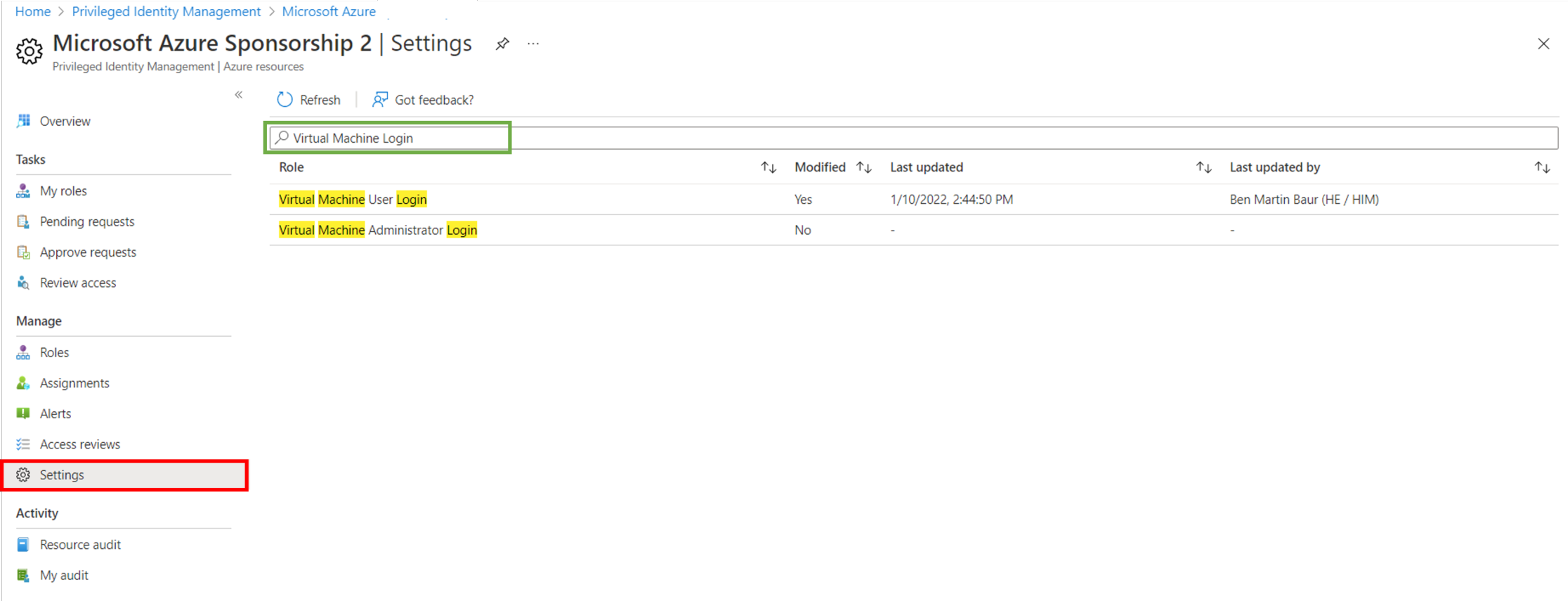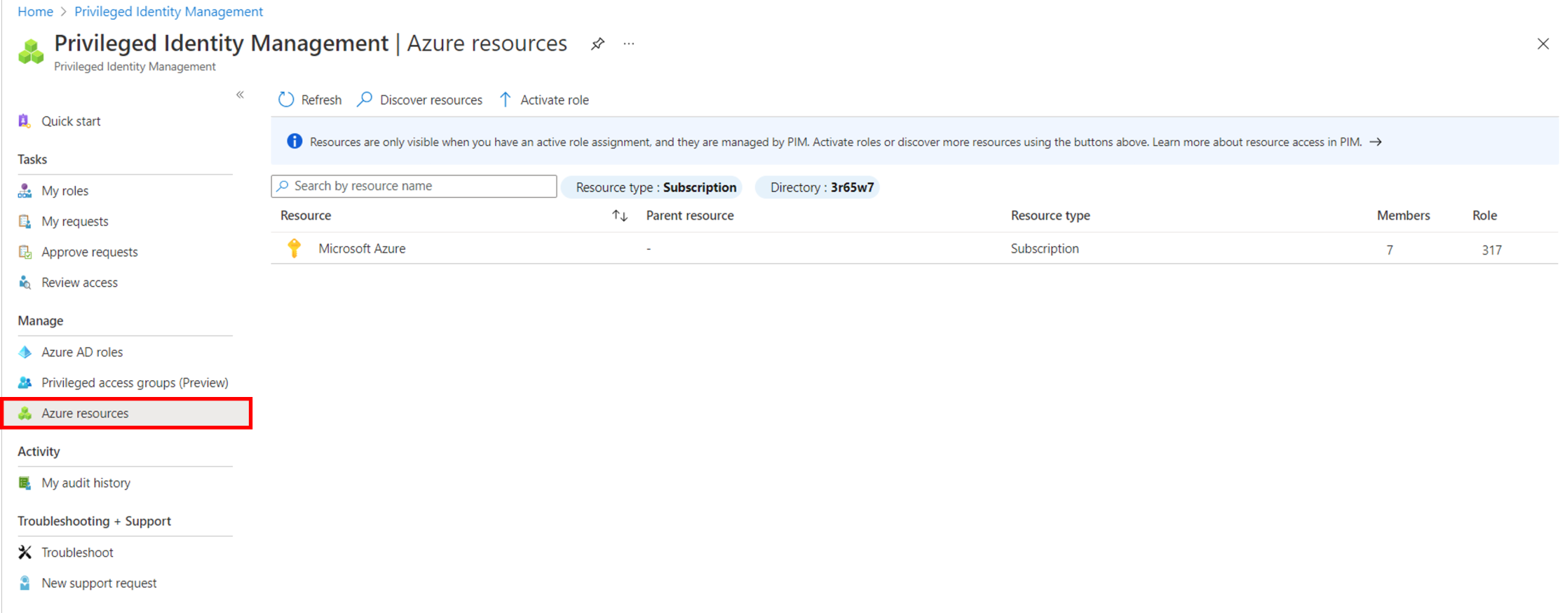 In the Azure Portal, open PIM, select Azure resources and your subscription.