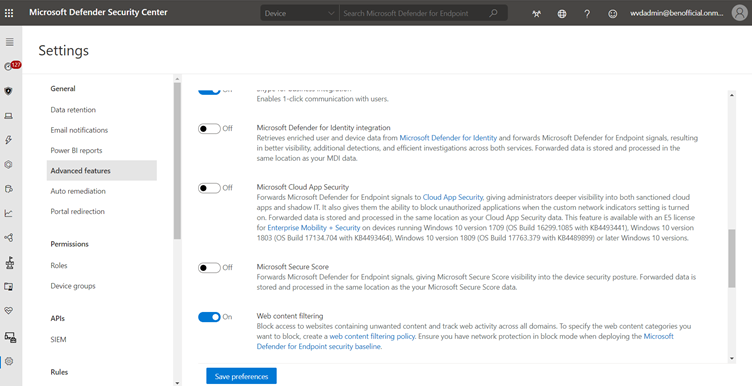 - From the left-hand navigation menu, select Settings > General > Advanced Features. Scroll down until you see the entry for Web content filtering and switch the toggle to On and Save preferences.