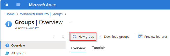 Go to entra.microsoft.com, open Groups, and click New group to create it.