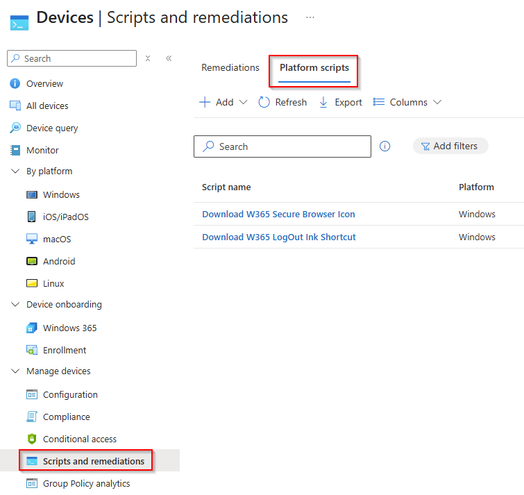 Upload this PowerShell script to Intune under Devices → Scripts and Remediations so it can be integrated into your Device Preparation Policy. Make sure to assign the script to the Windows 365 Frontline Cloud PCs device group as well. This prepares all Cloud PCs so they’re fully ready for users to connect after reprovisioning.